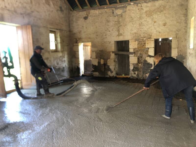 In 2025 zullen we naast de huidige 4 gîtes en de chambre d’hôte een vijfde gîte openen. Het gaat om een ander gebouw gelegen aan onze grote cour met een kleine, privé achtertuin. De nieuwe gîte heeft een totale vloeroppervlakte van 72 m2 en is straks vanzelfsprekend voorzien van een keuken, toilet en badkamer. De grote slaapkamer met een tweepersoonsbed en een eenpersoonsbed bevinden zich op een mezzanine, dat is een verdieping over de helft van het gebouw. Het deel van de begane grond onder de mezzanine zal daarom zo’n 2m80 hoog zijn terwijl je in het andere deel helemaal naar het schuine dak kijkt.